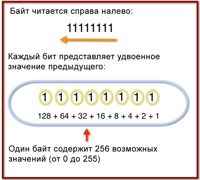 Байт («один кусь», от bite — кусать) — тоже единица измерения, равная 8 бит, может кодировать одно из 256 различных значений. Физически это минимально независимо адресуемый набор данных (можно взять 1 байт, но нельзя взять один бит).