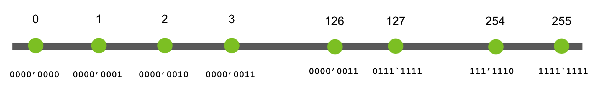 Хранятся в 1–4 байтах, в двоичной форме, все 8 бит байта используются для записи числа.