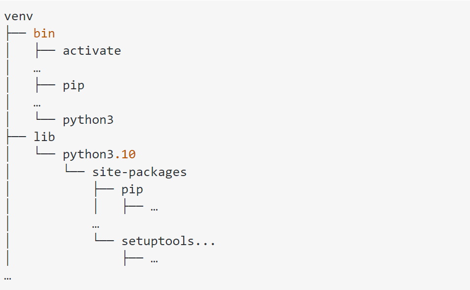 Каждое окружение — директория, содержимое которой похоже на обычное системное, общее окружение. В нем можно найти сам Python и его установленные пакеты. Именно эти пакеты будут импортированы, когда вы пишете