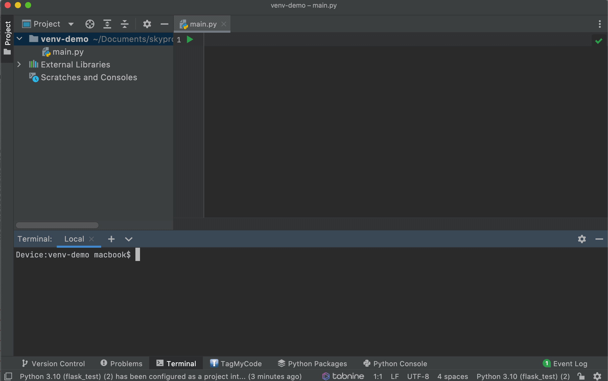 Нажмите OK, чтобы завершить настройку. IDE подумает и создаст окружение.