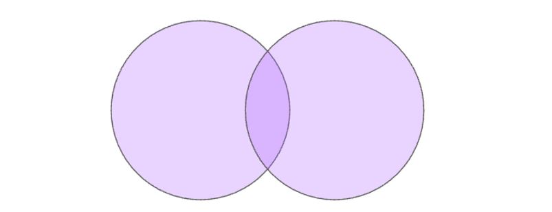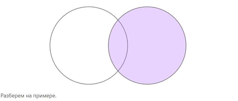 Подходит, если нам нужно найти все значения из первой и второй таблицы и их пересечения. Графически можно изобразить так: