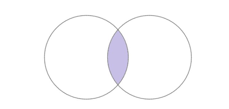 Подходит, если нам нужно найти только пересечение двух таблиц. Графически можно изобразить так: